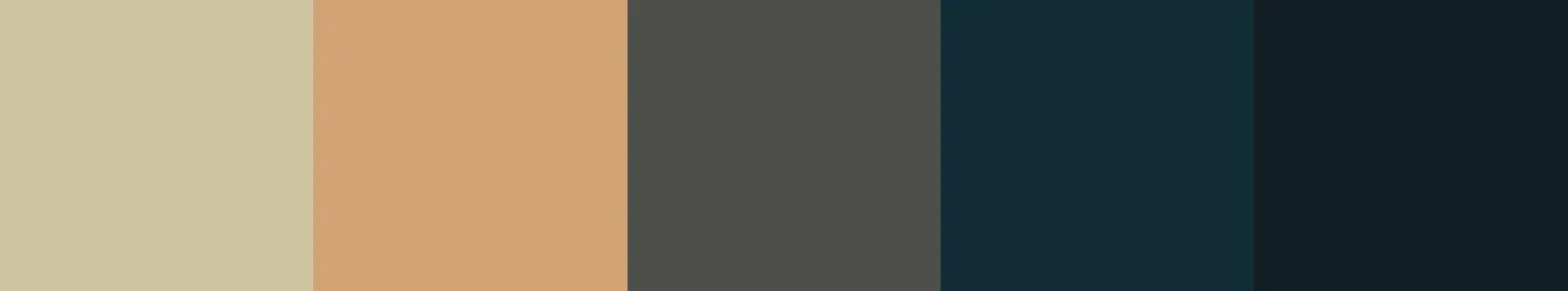 #cdc3a0 | #d3a375 | #4f4f4a | #102d37 | #111f23 |