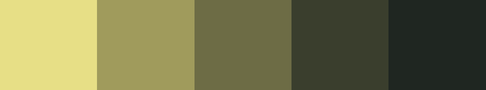 #e7df86 | #a09b5c | #6d6c45 | #3a3e2d | #1f2621 |